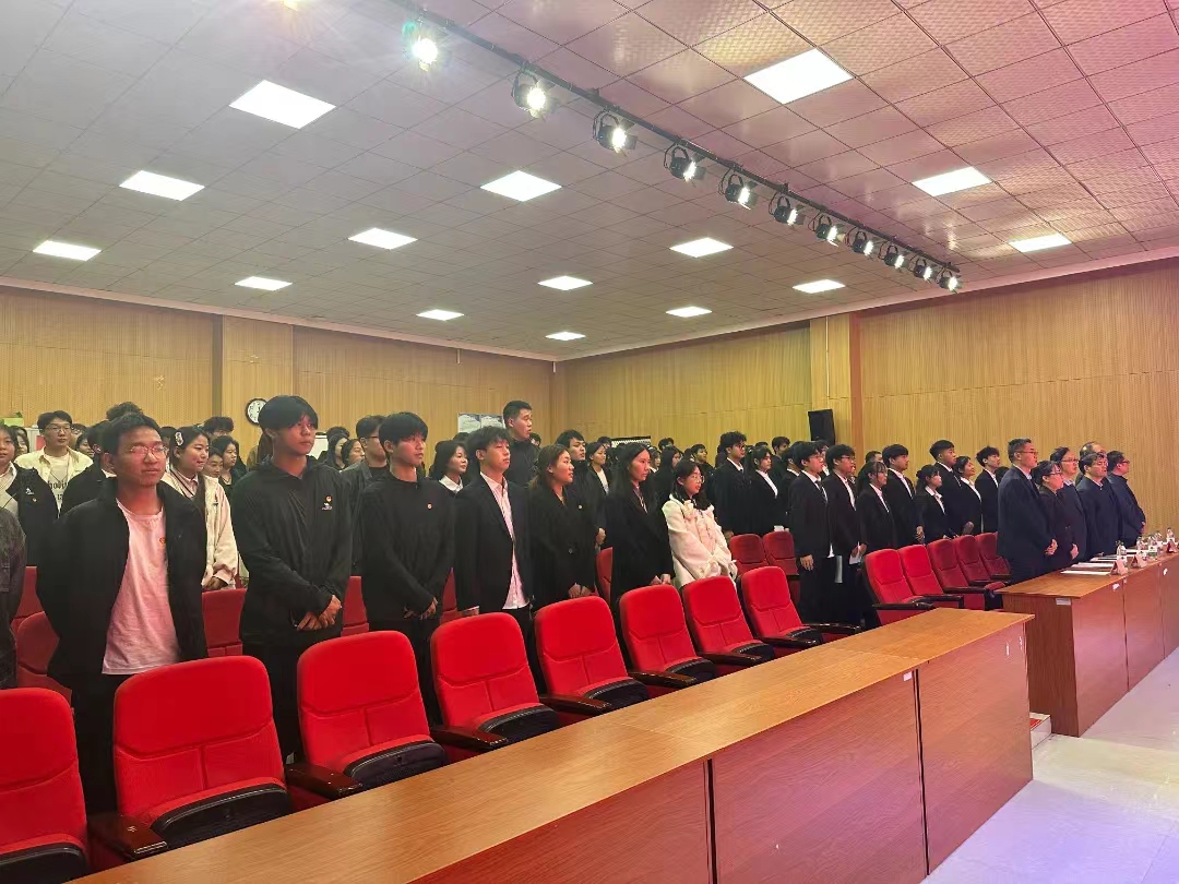 本次大会由学管办主任张矿伟主持。张主任首先回顾了学院在过去的一年时间里取得的辉煌成就,并指出,这次的换届大会有助于促进学校与学生之间的沟通和互动,同时也促进了校园文化的建设与发展。张主任呼吁各位干部们要勇于奉献,积极投身于学院的学风建设之中,希望各个干部们能够继承和发扬团总支学生会暨自律委员会的优良传统,以更加饱满的热情和创新的精神,为学院生活注入新的活力。