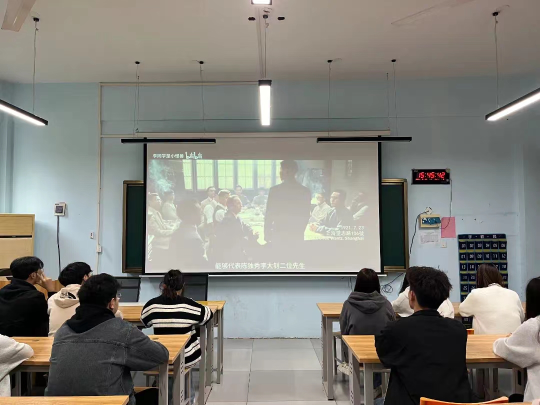 主题党日活动中,学生支部书记楚书来阐释了红色故事在中国革命和建设发展历程中发挥的作用,带领大家重温了党的历史,回顾了入党初心。在播放的视频中,有闻一多先生慷慨激昂的演讲,丝毫不惧国民党特务的威胁;中焦裕禄同志在兰考县工作期间,以坚强的毅力、对党和人民事业高度忠诚,带领全县干部群众治理“三害”的感人画面;中国共产党领导人民为赢得民族解放与日寇浴血奋战的英雄业绩等等。观看过程中,同学们在看到革命战士为了新中国的未来舍弃家人,背井离乡,奋勇抗敌,为国捐躯时,不少人为之感到心疼,眼角的泪水不自觉的流下。这也反映出了共产党人、爱国人士和千千万万中华儿女在建立新中国过程中所展现的艰辛奋斗、甘于奉献、自强不息的民族精神,以及大无畏的牺牲精神和革命乐观主义精神。