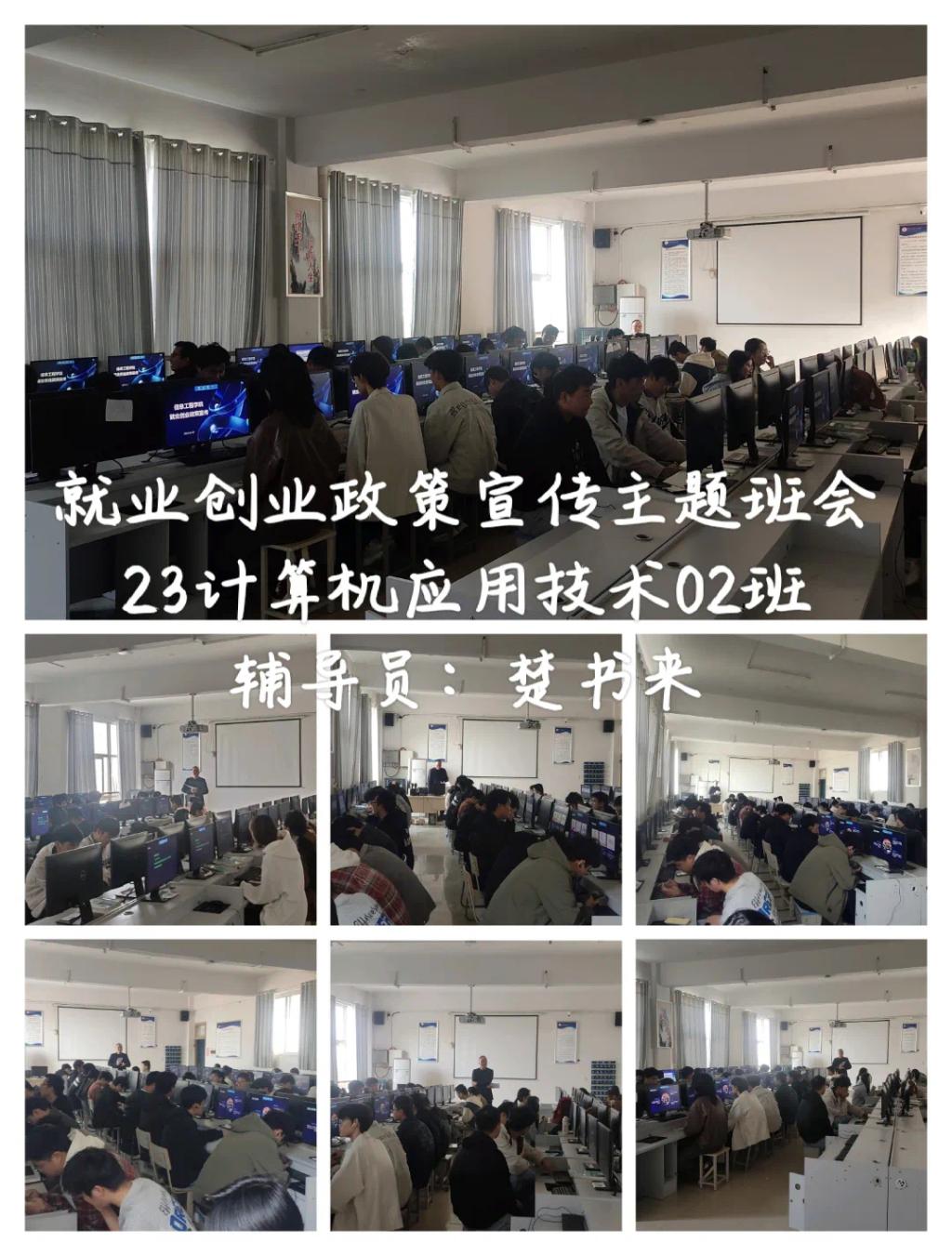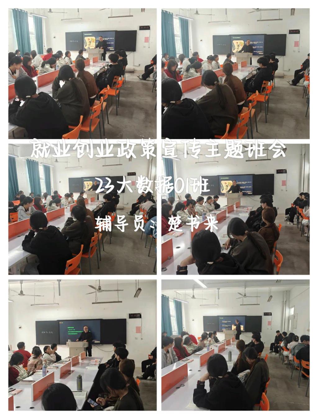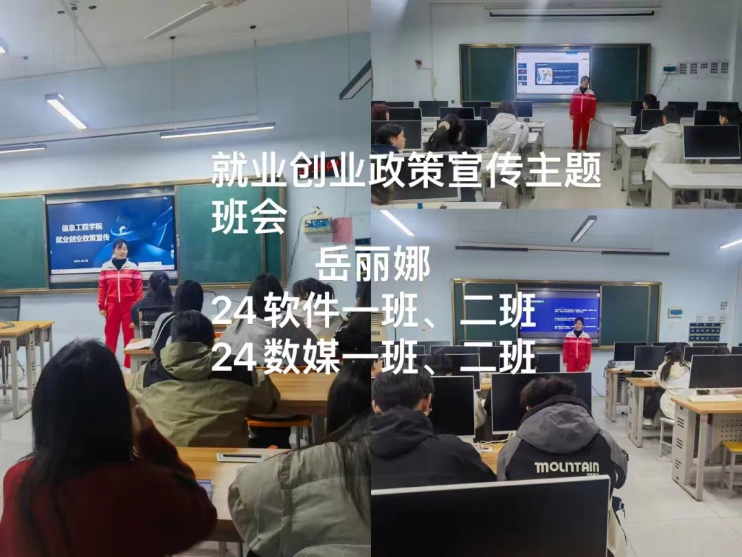 在主题班会上,辅导员老师们详细向同学们介绍了就业创业政策,引导同学们认清当前就业形势、转变就业观念,牢牢把握各类双选会等招聘时机,告诉同学们利用好就业创业政策和自身优势,为实现早就业、就好业创造条件,提醒同学们要多关注班级群通知,关注各企业和院校的通知。鼓励同学们深入基层、扎根基层、服务基层,努力将青春绽放在人民最需要、最急盼的地方,成长成为有理想、敢担当、能吃苦、肯奋斗的新时代好青年。