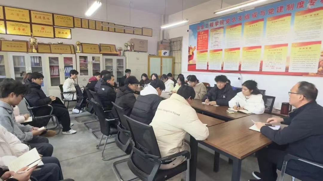 为了促进我院学生组织的建设,增强团队活力,明确未来的工作方向,并进一步提升学生骨干的综合能力和工作水平。信息工程学院于11月28号中午在办公室6140内召开了学生骨干工作例会。副院长楚书来、团总支学生会主席李金鹏、团总支学生副书记王佳硕、23、24级团总支学生会的41名学生骨干参加了此次会议,会议由院长楚书来主持。