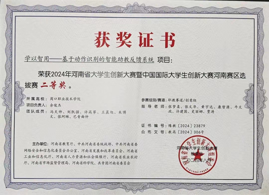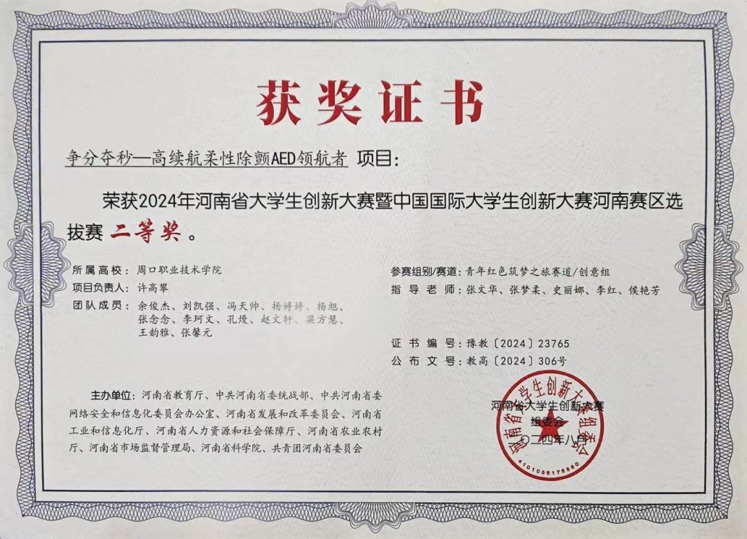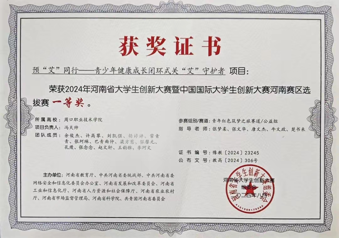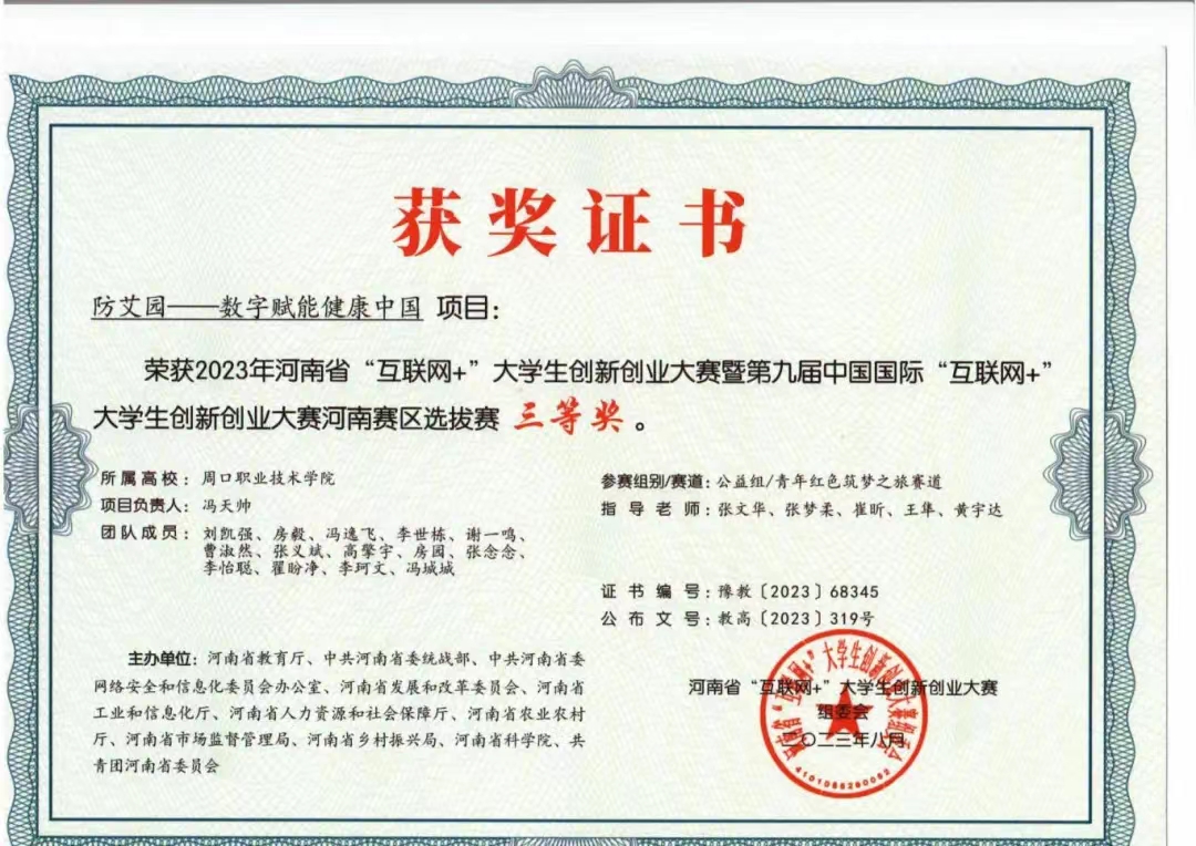 学而不思则罔,思而不学则殆。自入学以来,他始终保持着高度的学习热情,从未放松对自己的要求,坚持“今日事,今日毕”的原则,积极投身于专业课程的学习之中,拥有清晰的学习目标和严谨的学习态度。在技能竞赛上,“实践是检验真理的唯一标准”,“做中学”是最有效的学习方法,该生为了全面提高自身综合素质,积极投身于职业技能竞赛,并在自身了解和老师带领下接触各类大学生赛事,带领项目团队一点一点打磨,最后以项目负责人带领“青春关艾行——青少年健康成长闭环式关“艾”守护者”项目团队获得第十七届“挑战杯”河南省大学生创业计划竞赛一等奖。