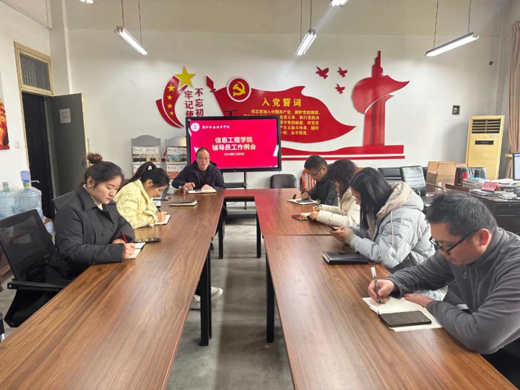 129日中午,在学院办公室6140,信息工程学院召开辅导员工作例会。副院长楚书来,学管办主任张矿伟及2324级辅导员参加了本次会议,会议由楚书来主持。