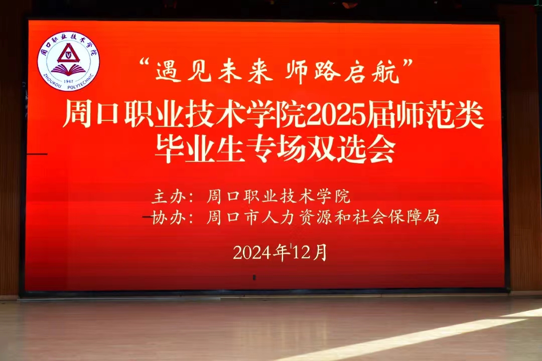 根据教育部《关于做好2025届全国普通高校毕业生就业创业工作的通知》精神,为深入学习贯彻落实党中央、国务院决策部署,实施“2025届全国普通高校毕业生就业创业促进和服务体系建设行动”,全力促进毕业生高质量充分就业,给毕业生搭建广阔的就业平台,促进教育人才与用人单位的精准对接,搭建精准高效的就业桥梁,周口职业技术学院于2024年12月14日在开元校区体育馆开展——“周口职业技术学院2025届师范类毕业生专场双选会”,我院积极动员在校学生参与此次活动。
