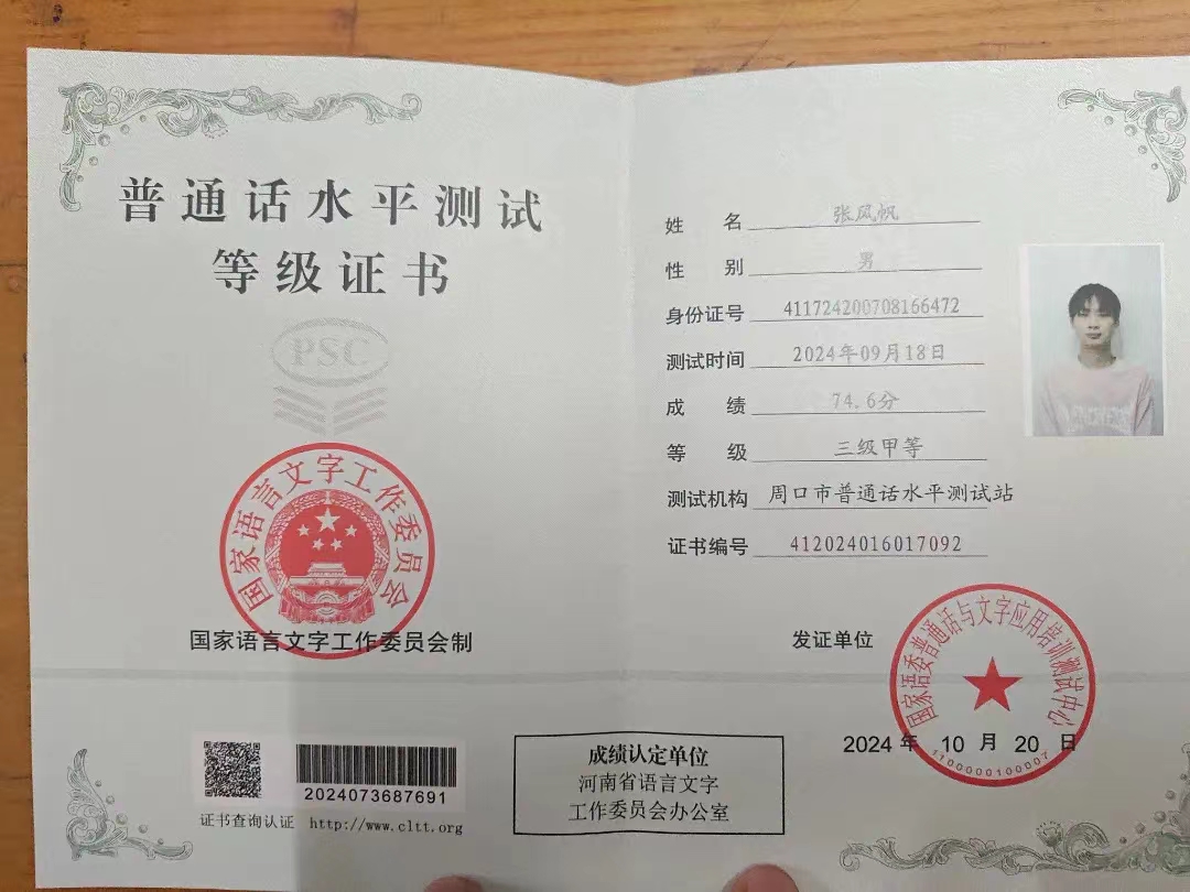 在大学期间,我深知语言表达能力对个人发展的重要性,因此我积极准备了普通话水平测试,并成功获得了普通话三级甲等证书。通过这次学习和考试,我不仅提升了自己的语言表达能力,也进一步增强了与他人沟通和交流的信心。我相信,这项能力将为我未来的职业发展带来更多的机遇和可能性。