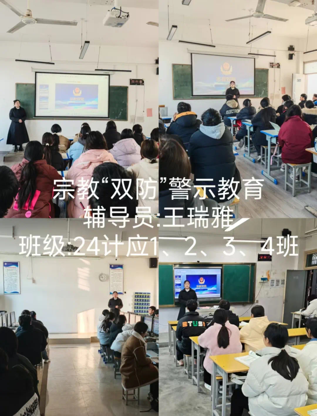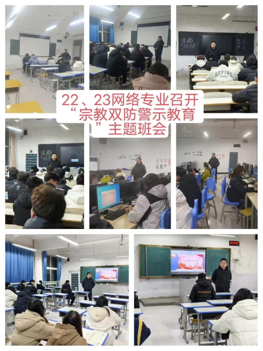 为了帮助同学们充分认识到非法宗教活动的危害,防范和抵御非法宗教势力向校园渗透,全面正确贯彻落实党的宗教政策,引导青年学生自觉抵制宗教渗透及传播。信息工程学院开展“奋进新时代,周职周周讲”第六十九期----民族宗教政策法规宣传教育主题班会。