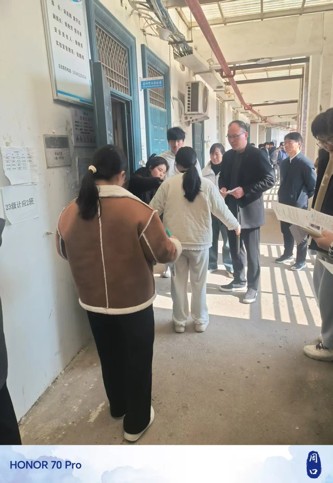 活动开始时,在机房外,宋书记首先组织同学们模拟了一遍考前流程,并特别强调了诚信考试的重要性。领导们从考试规则的严格要求谈起,详细说明了违反诚信原则所带来的严重后果,包括成绩无效、取消考试资格以及对个人诚信档案的负面影响。此外,领导们还分享了一些以往因作弊而受到处罚的真实案例,使同学们深刻理解到诚信考试不仅是对自己负责的表现,也是对他人和教育公平的尊重。通过这些讲解,目的在于让每一位考生都能充分认识到维护考试诚信的重要性,确保每位学生都能以正确的态度面对考试,共同维护一个公正、公平的考试环境。