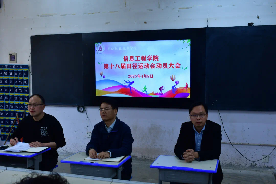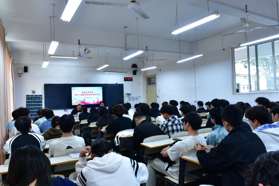 在春花烂漫的季节里,周口职业技术学院即将迎来第十八届运动会。为了鼓舞士气、凝聚力量,信息工程学院于4月8日中午在6143教室召开了动员大会。此次召开动员大会,旨在激发同学们的参与热情和团队精神,确保每位参与者都能以最佳状态投入到即将到来的比赛当中。