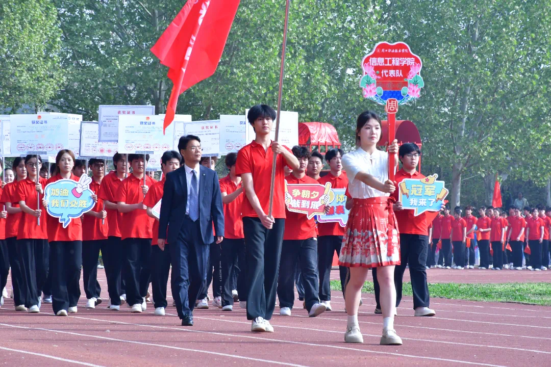 暖阳洒落,活力四溢。在这场运动会开幕式上,周口职业技术学院师生神采飞扬,尽显朝气蓬勃。这场运动会不仅是力量与速度的较量,更是团结与拼搏精神的象征。它将成为我们校园生活中一段难忘的记忆,激励着我们在未来以昂扬的斗志和坚定的信念迎接每一个挑战,书写属于我们的青春华章。