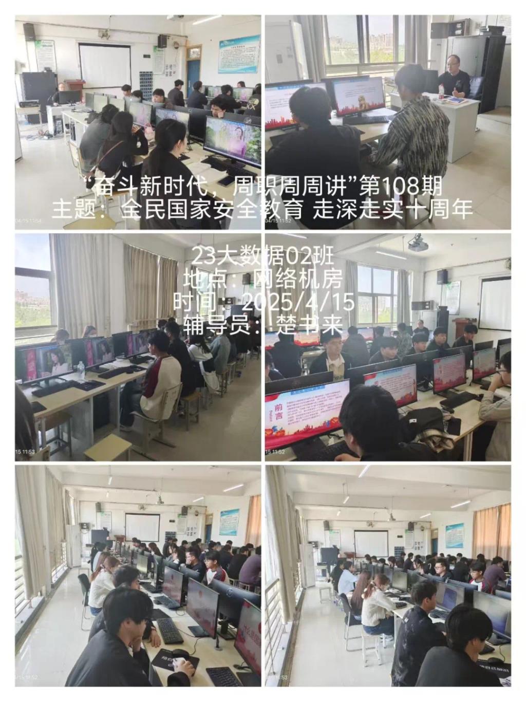 为深入学习贯彻落实总体国家安全观,增强师生的国家安全意识。信息工程学院于4月中旬在各个班级开展“奋进新时代、周职周周讲”主题班会第108期“全民国家安全教育,走深走实十周年”主题班会。此次班会旨在深入学习贯彻总体国家安全观,增强同学们的国家安全意识,培养他们的责任感和使命感。