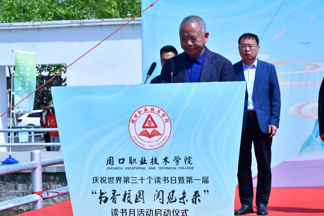为进一步激发学生的阅读兴趣,营造浓厚的书香氛围,周口职业技术学院在开元校区湖心广场举办了庆祝第三十个世界读书日暨首届“书香校园,阅见未来”读书月活动启动仪式。信息工程学院积极参与此次活动。启动仪式由学校宣传部部长万四新主持。