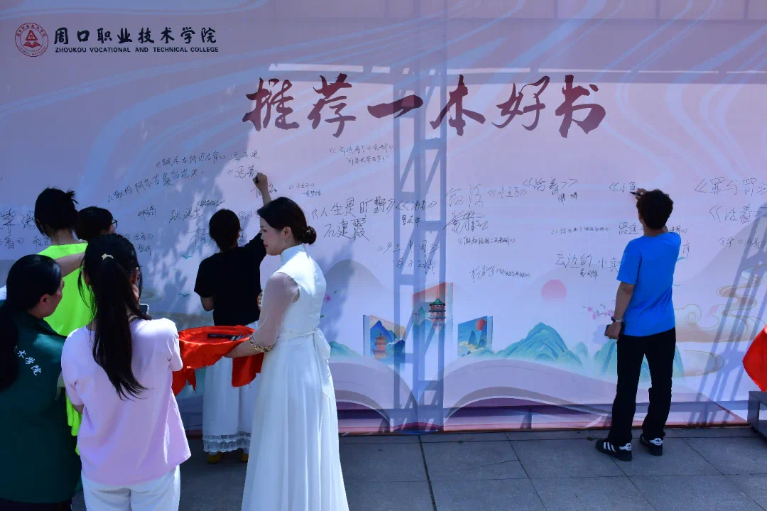 图书馆馆员代表也在启动仪式上向全体师生发出了倡议,呼吁大家积极参与到读书月活动中来,共同营造一个充满书香气息的校园环境。主会场活动结束后,师生们移步至“好书推荐墙”活动现场。大家纷纷将自己喜欢的一本书写在好书推荐墙上。这一互动环节不仅激发了大家的阅读热情,也为全校师生提供了一个分享和发现优秀书籍的平台。