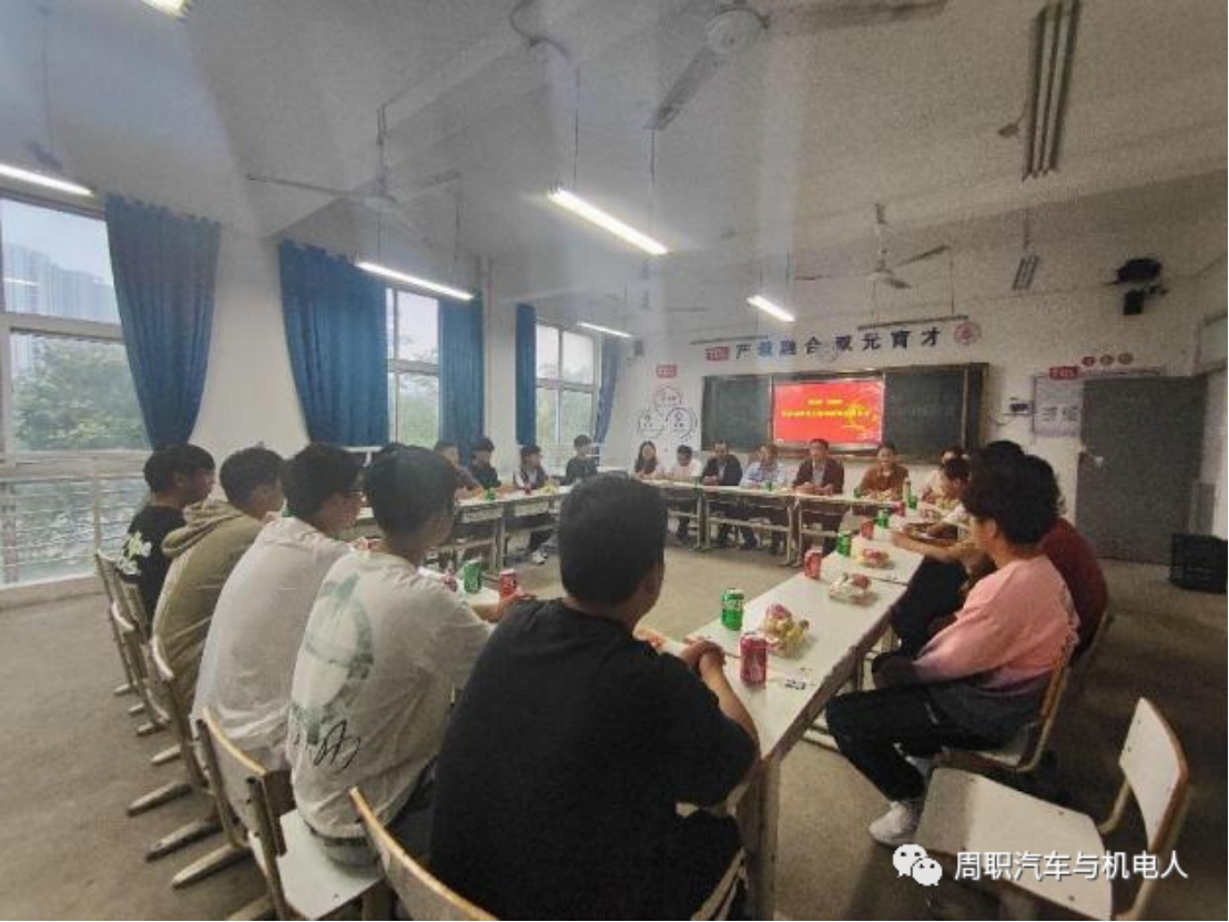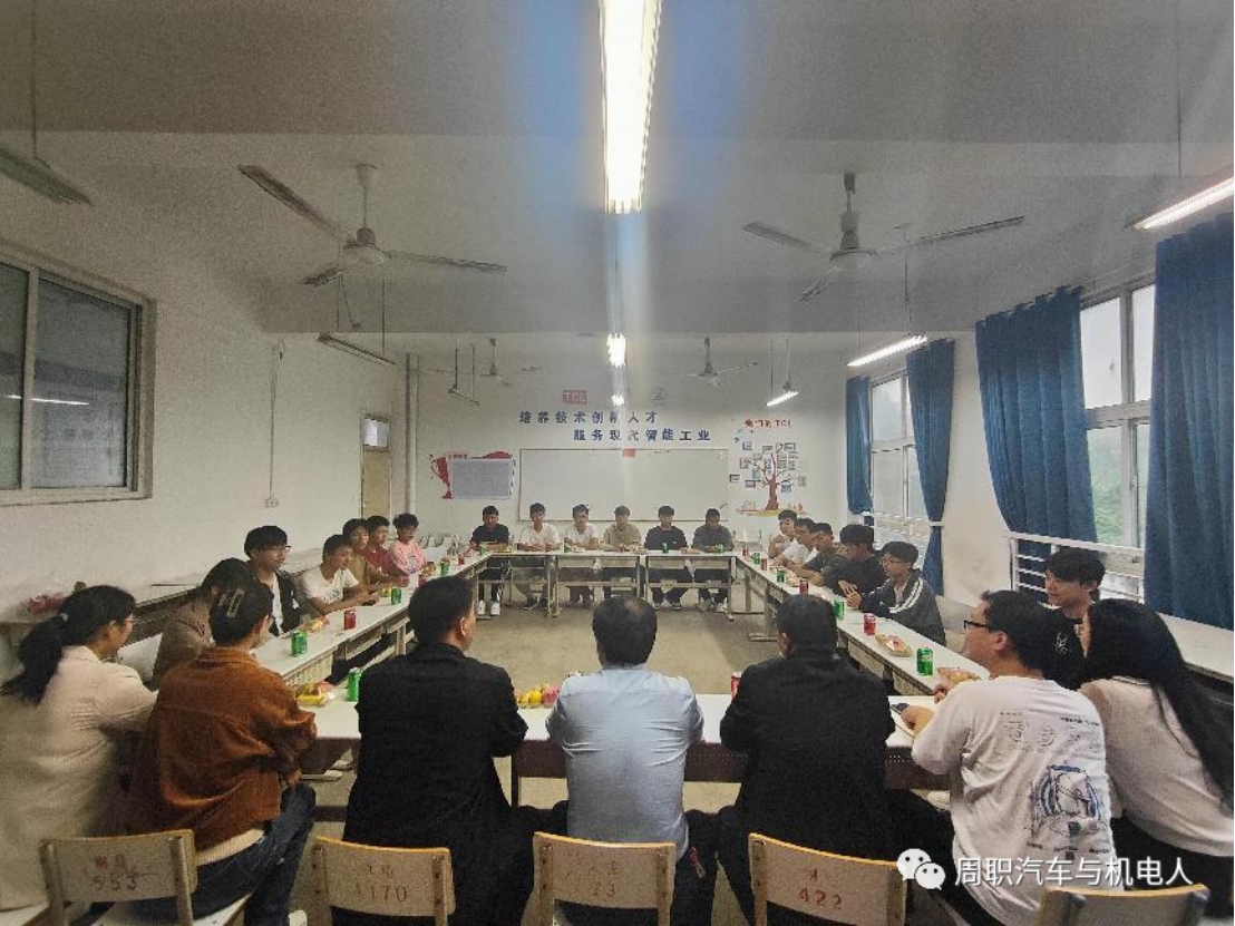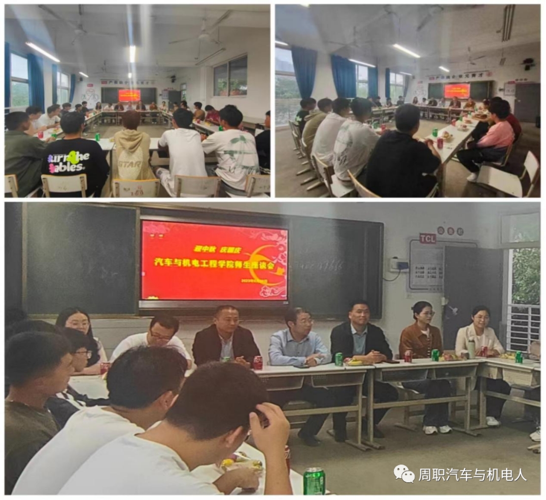 金秋九月,丹桂飘香。在中秋、国庆“双节”来临之际,2023年9月28日下午,周口职业技术学院汽车与机电工程学院开展“迎中秋·庆国庆”师生座谈会。党总支书记崔东风,副院长王文立、田伟华,学生管理办公室主任王亮,综合办公室主任、23级辅导员雷艳华,教学管理办公室主任、23级辅导员丁兰花,教师代表苏大体,23级留校学生代表,22级学生干部代表等参加座谈会。