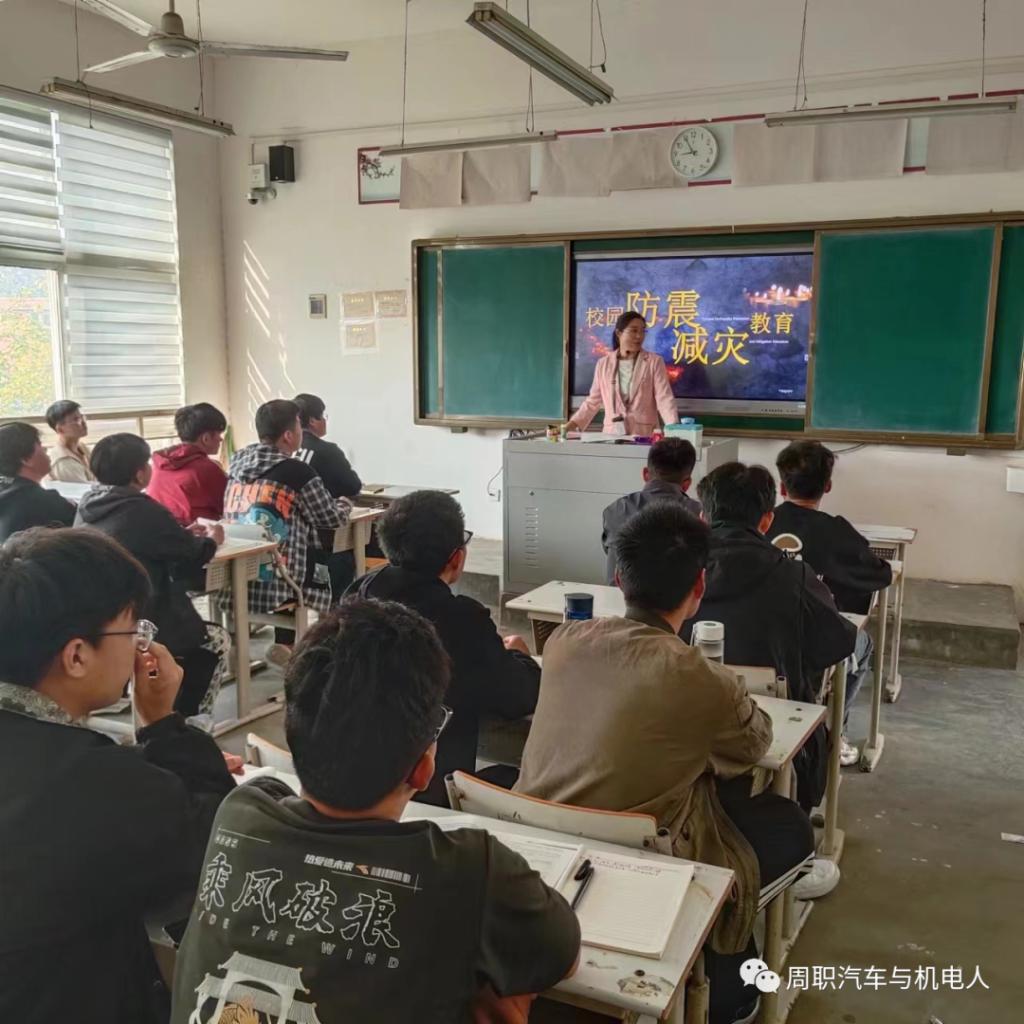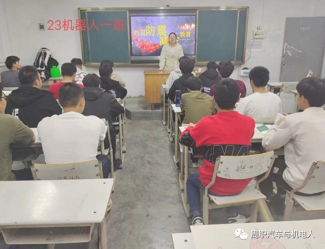 地震对人类的生命和财产造成很大的威胁。为了进一步宣传普及防灾减灾知识,提升同学们应对地震灾害风险防范意识和能力,保障自身安全。周口职业技术学院汽车与机电工程学院于2023年10月27日晚上各班级开展“防震减灾,珍爱生命”主题班会,进行与地震相关的学习和讨论。
