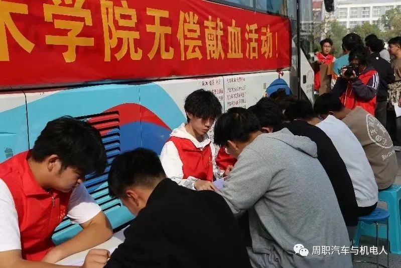 为培养青年学子公民意识、服务意识和奉献意识,提供一个奉献爱心的平台,周口职业技术学院汽车于机电工程学院学子们于10月26日积极参加无偿献血活动。