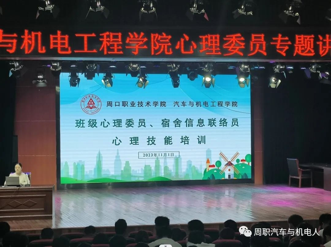 为了加强心理委员对岗位的认知,帮助同学们保持健康积极阳光的心态,发挥同学之间互帮互助的作用,2023年11月1日下午三点汽车与机电工程学院在励德厅二楼举行心理委员专题讲座。参加此次讲座的成员有22级23级心理委员及各宿舍信息联络员。