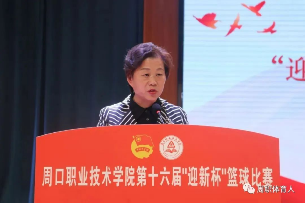 副校长李秀萍讲道:希望在比赛过程中全体球员大力发扬体育精神,赛出水平,赛出友谊;希望各位裁判员本着“公开、公正、公平”的竞赛原则,秉公执法;希望组委会成员和工作人员努力工作,热情服务。力争把本届“迎新杯”篮球赛办成一个“文明、精彩、圆满”的盛会。最后,预祝周口职业技术学院第十六届“迎新杯”篮球赛圆满成功。