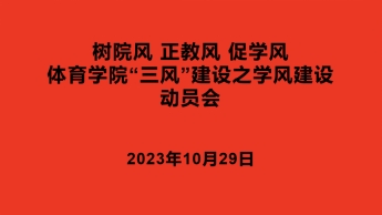 10月29日,体育学院召开了全体学生“树院风 正教风 促学风——体育学院“三风”建设之学风建设动员会”,会上李海磊副院长分析了体育学院学风建设的现状以及目标,宣读了《体育学院专升本选拔推优方案》(草案)以及具体实施措施。