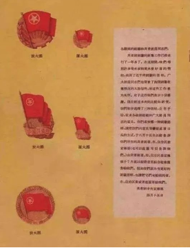 “1959年4月29日,团中央书记处第一书记胡耀邦向中共中央书记处候补书记刘澜涛送交了关于请求党中央审议团徽式样的报告,并附上由李国靖画成的标准图和根据这个标准图制作的样章,报告还向党中央提出5月4日公布团徽的建议。