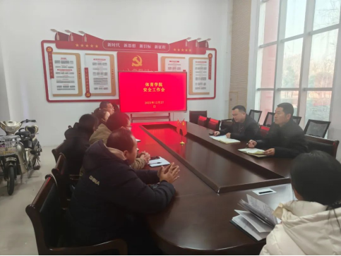 为贯彻落实学校安全工作会议精神,进一步做好学院安全管理工作,预防安全责任事故的发生,构建和谐校园。体育学院于12月27日,召开了体育学院安全工作会。参加本次会议的有党总支书记范伟杰,副院长李海磊。