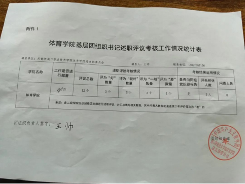 体育学院团支部书记述职评议考核公示表