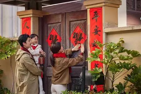 贴春联是春节期间非常重要的传统活动之一。春联是一种用红色纸张写成的对联,上联和下联通常对仗工整,寓意吉祥如意。人们会将春联贴在大门、墙壁或窗户上,以迎接新年的到来。贴春联的活动既热闹又有趣,全家人一同参与,共同营造出喜庆的氛围。