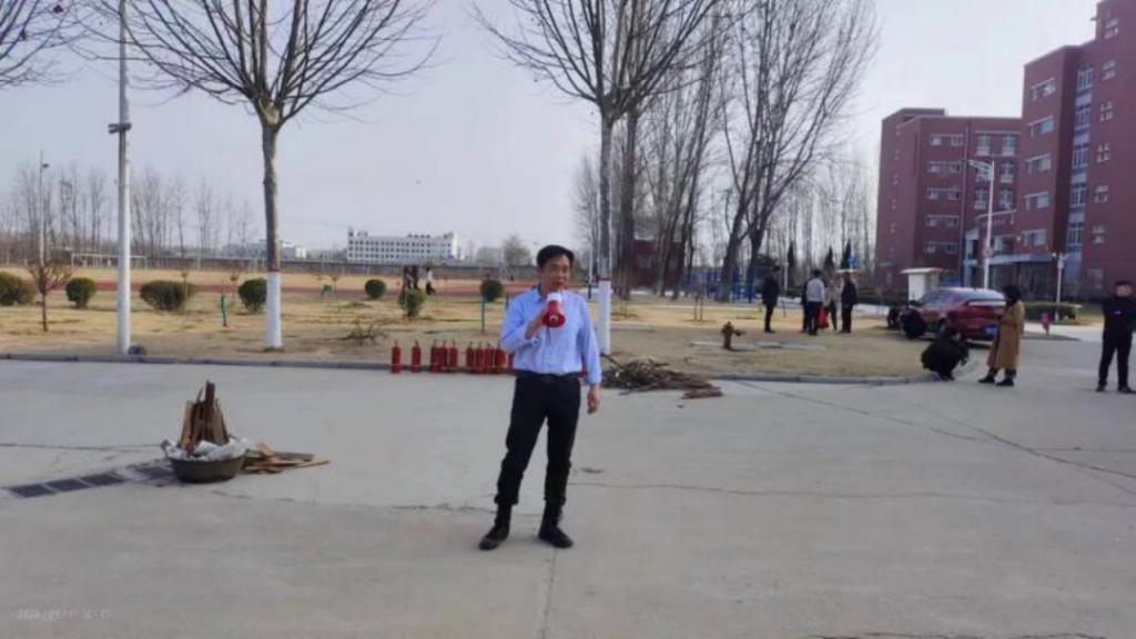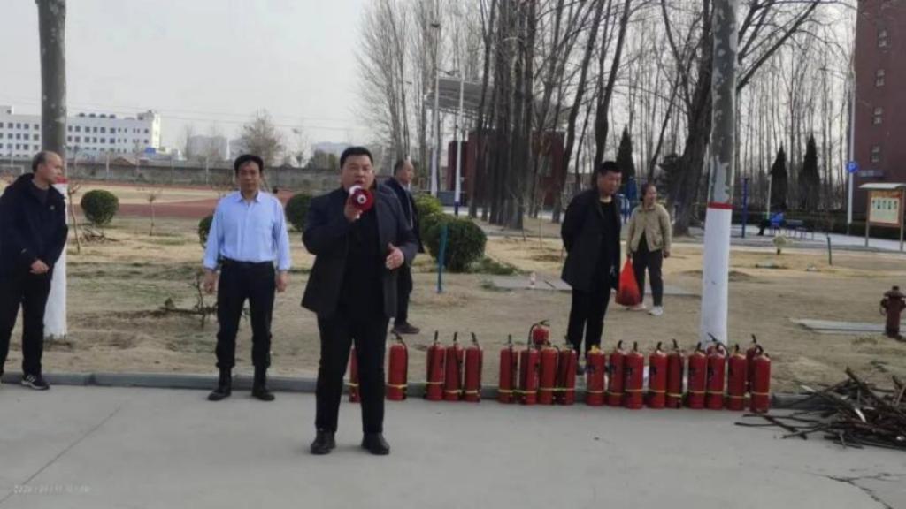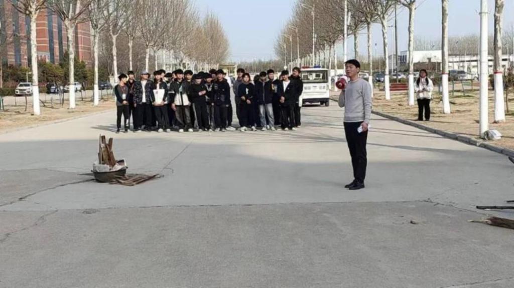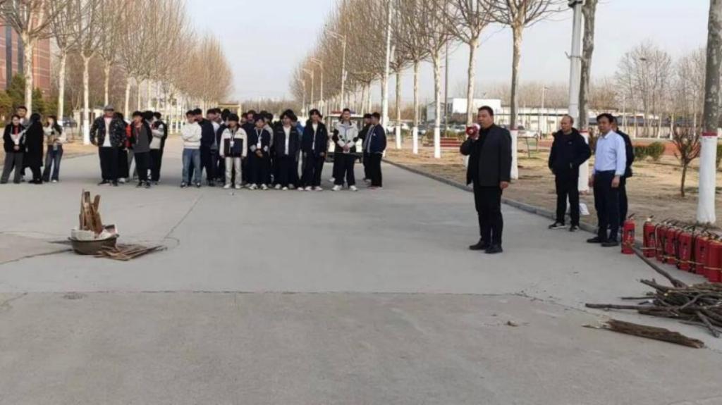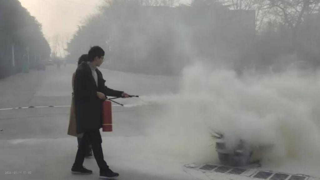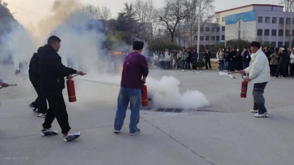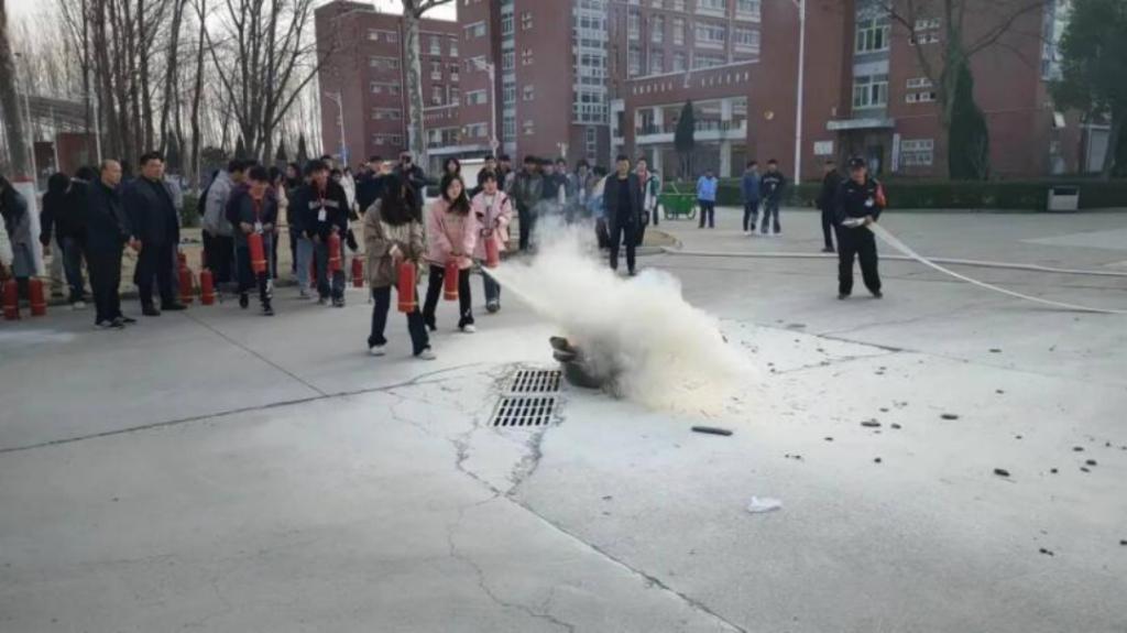 演练中,学校模拟了火源的出现。部分师生代表进行实际操作练习,进一步掌握灭火器的正确使用方法。