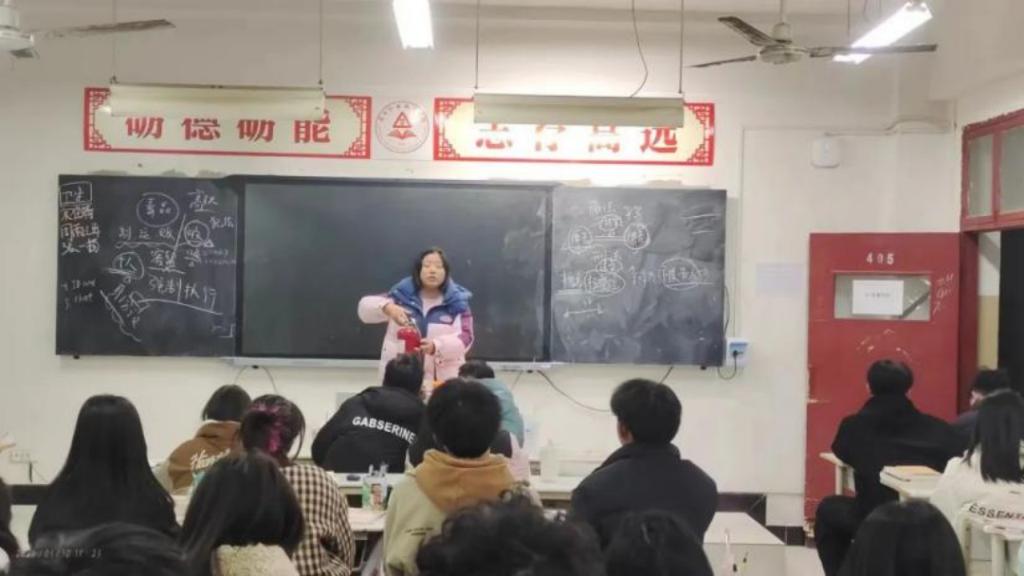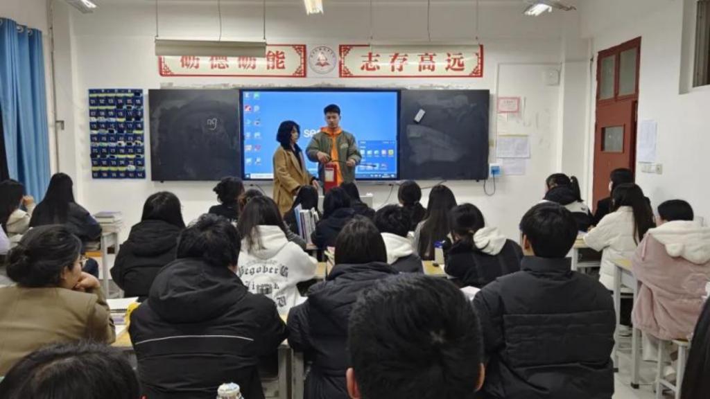 在班会课上,各班辅导员向同学们演示了灭火器的正确使用方法,还鼓励同学们实践,并结合相关案例告诫同学们要注意消防安全,提高同学们的消防安全意识。