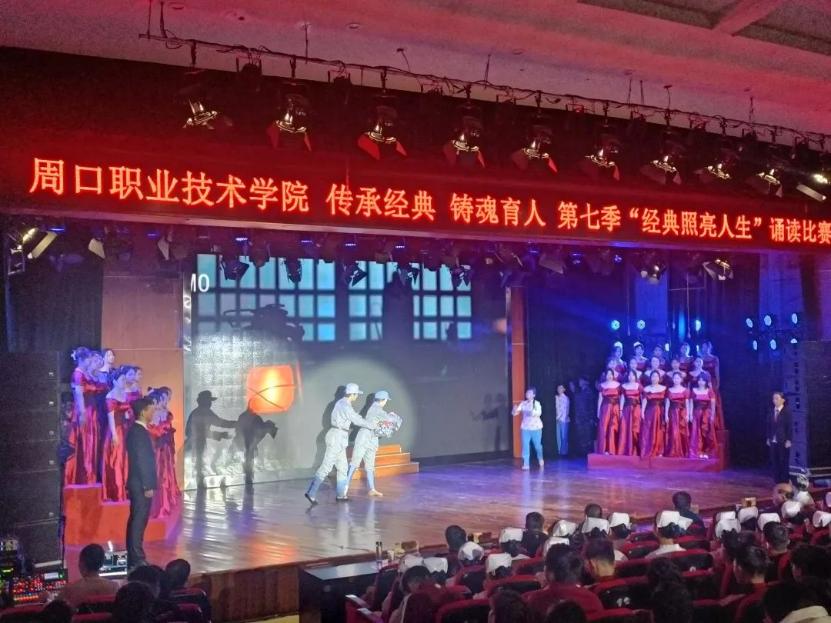 2023年12月27日,周口职业技术学院传承经典铸魂育人第七季“经典照亮人生”诵读比赛在开元校区励德厅隆重举行。医学院节目《红色乳娘》以全场最高分,荣获“一等奖”。
