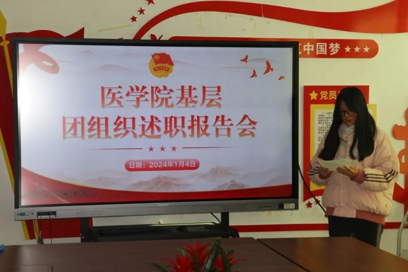 为深入学习贯彻落实党的二十大精神和习近平总书记关于青年工作的重要思想,紧紧围绕团的根本任务、政治责任、工作主线,压实基层团组织书记责任,增强政治性、先进性,推动基层团的组织力、引领力、服务力。2024年1月4日,医学院于行政楼4楼党员活动室404举行了基层团组织述职报告会议,团总支书记聂蕾、各班团支书参加本次会议,本次会议由学生骨干水冰冰主持。