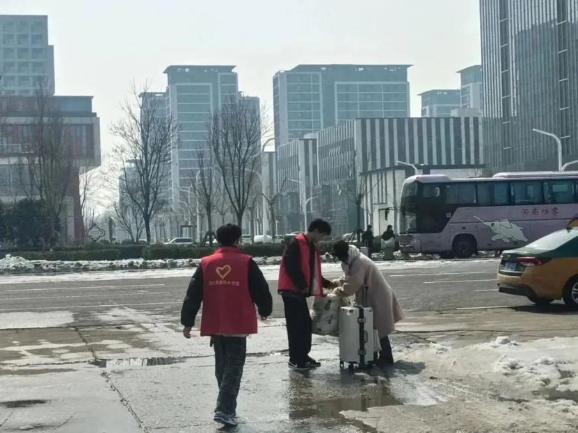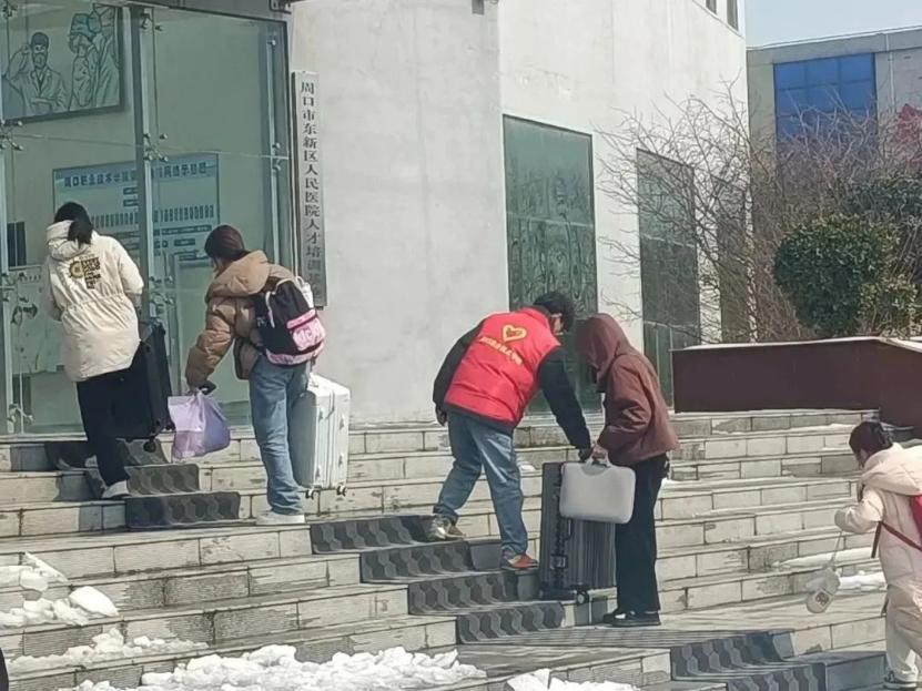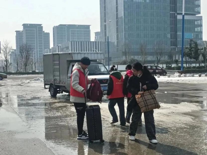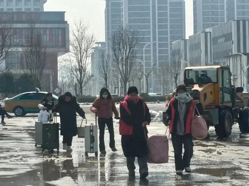在寒冷的天气中,志愿者们身着统一的服装,面带微笑,为返校的同学们提供帮助。他们主动接过同学们手中的行李,引导大家有序地进入校园和宿舍楼。志愿者们的热情服务和细心关怀,让学生和家长感受到了学校的温暖和关爱。他们的辛勤付出也得到了师生们的一致好评。