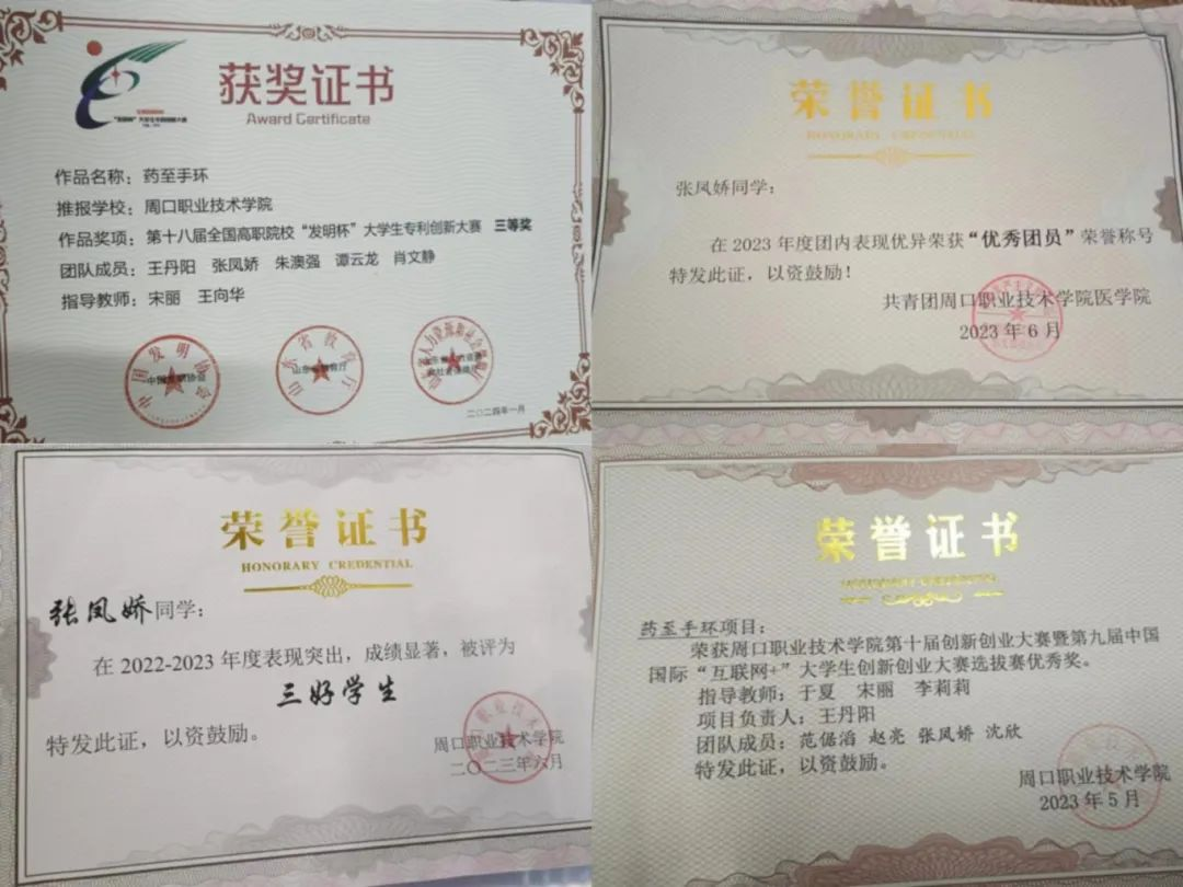 张凤娇,22级药学专业学生。现任班级班长、心理委员。她踏实努力,勤学好问,她的综合测评成绩在阶段名列前茅,获得2022-2023学年国家励志奖学金,校级“三好学生”,”优秀团员”等荣誉称号。张凤娇积极参加各项活动,在摄影大赛中获得优秀奖;在“互联网+”大学生创新创业大赛选拔中获得优秀奖;在全国高职院校“发明杯”大学生专利创新创业大赛中获得三等奖。通过各种活动不仅提升了张凤娇的综合素质,更提高了语言表达、团队合作、人际关系等各方面的能力。