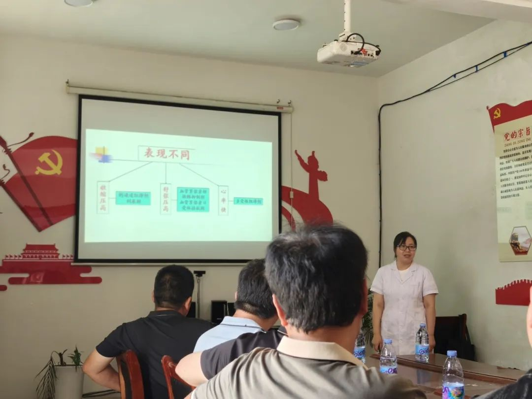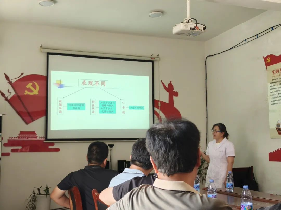 众所周知,高血压病多发于老年人群体。因此为老人们科普高血压相关知识以及预防措施也显得尤为重要。在本次”三下乡“健康急救知识宣讲中,卢雯莉老师为了能让在场人员更好地理解,她采用了PPT和视频相结合的方式,为在场人员详细地讲解了有关高血压方面的知识。