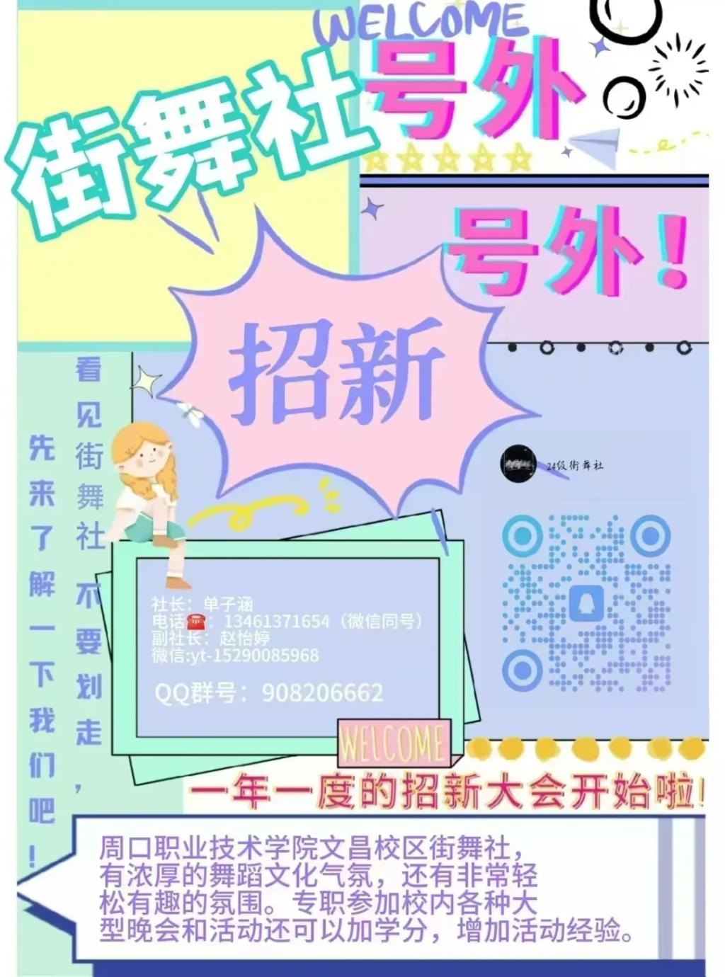 周口职业技术学院文昌校区街舞社,有浓厚的舞蹈文化气氛,还有非常轻松有趣的氛围。专职参加校内各种大型晚会和活动还可以加学分,增加活动经验。