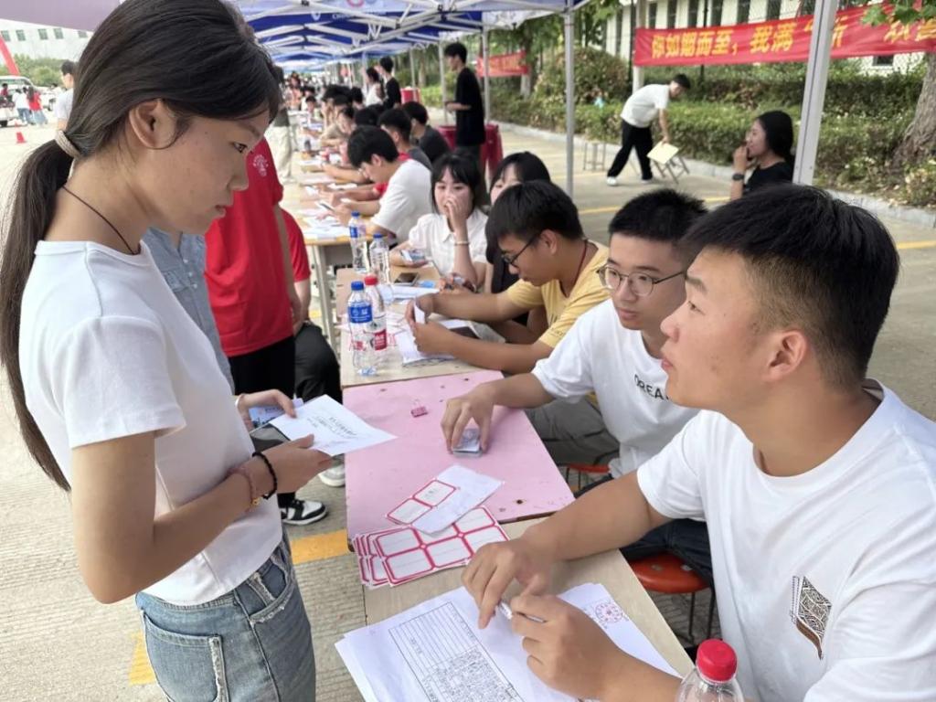 迎新现场,志愿者们早早地来到了自己岗位等待新同学们的到来。新生们陆续进校,校园也渐渐热闹起来。志愿者们坚守岗位、面带微笑,主动上前为新生答疑解惑,耐心地回答着每一个问题,无论是报到问题、询问宿舍的位置,还是了解校园的设施,志愿者们都耐心的一一为他们解答。