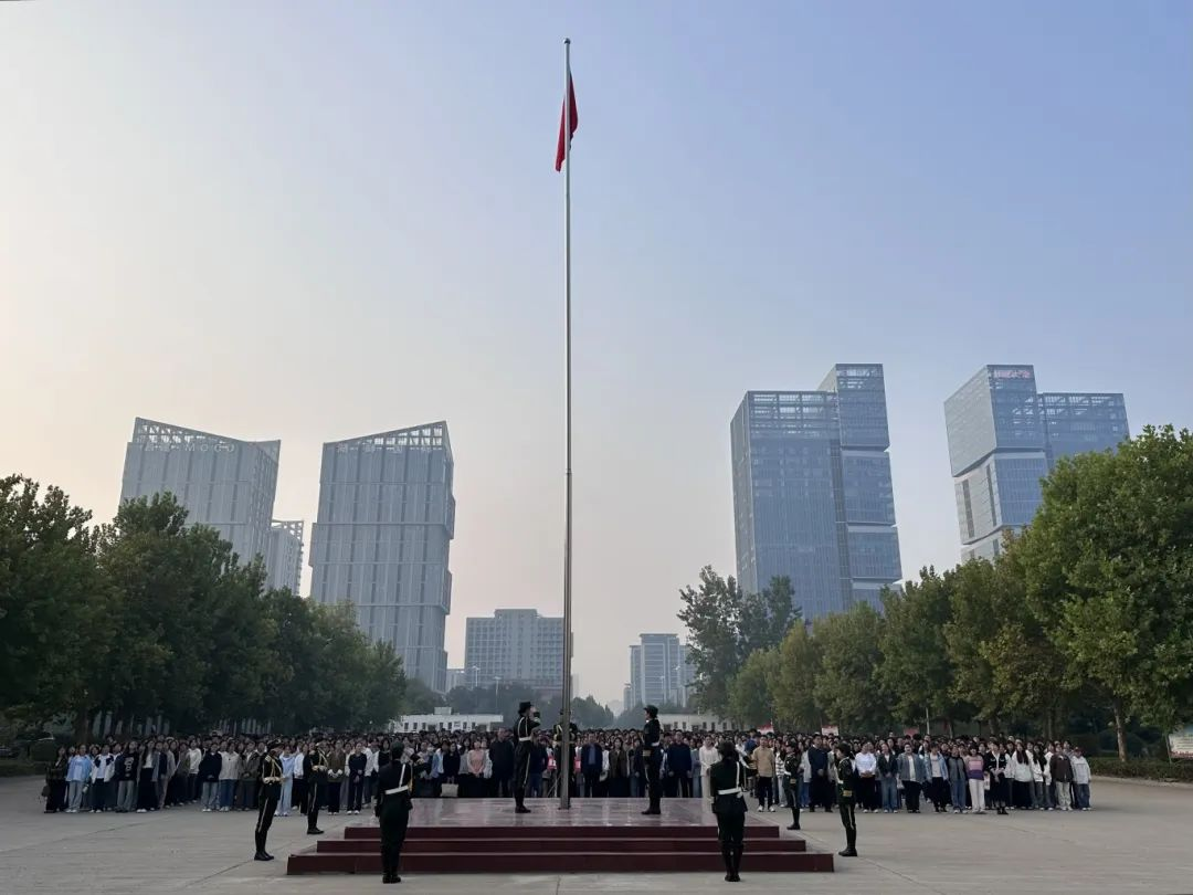 10月14日,周口职业技术学院文昌校区举行第七周升旗仪式。医学院全体副科级以上干部、辅导员、全体在校学生参加本次升旗仪式。