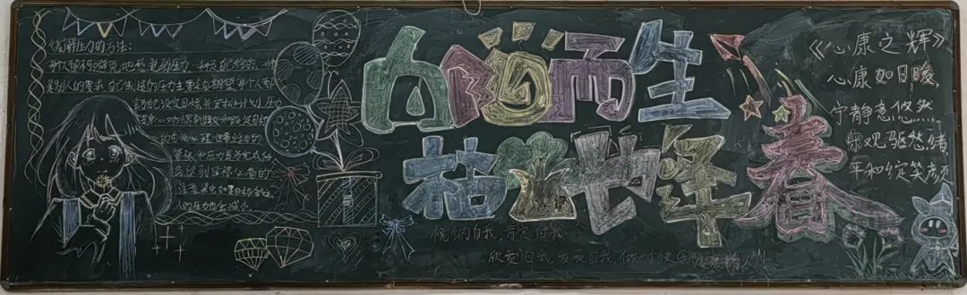 本次活动一经发出,同学们便纷纷踊跃报名。他们紧紧围绕本次活动的主题,用彩笔和粉笔分别勾画出一幅幅内容积极向上,色彩鲜明的手抄报和黑板报作品。接下来就让我们一起来欣赏一下部分优秀作品吧!