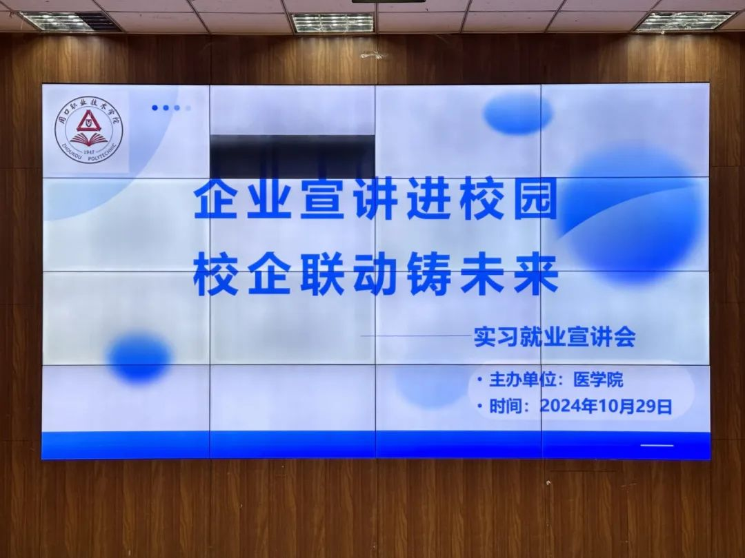 进一步加强校企合作,深化产教融合,10月29日下午,医学院在文昌校区多媒体室举办“企业宣讲进校园 校企联动铸未来”宣讲会。邀请周口市规上制药企业工程师为2023级、2024级药学专业全体学生作专题讲座。讲座由医学院副院长王向华主持,医学院班子成员、药学教研室教师代表参加。