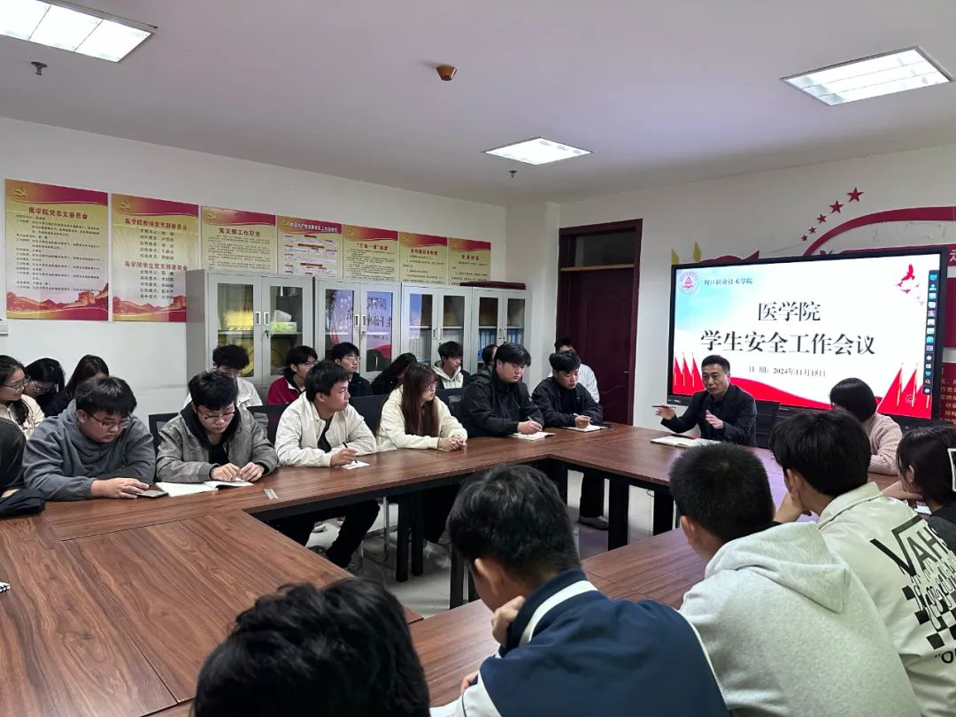 为加强我院学生安全管理工作,提高学生的安全意识,11月15日上午,医学院于行政楼4楼党员活动室召开学生安全工作会议。医学院党总支书记苑建伟、学管办主任聂蕾及23、24级学生干部参加本次会议。