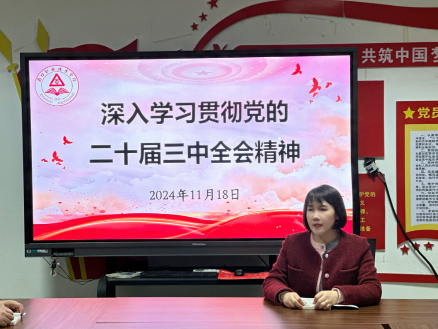 课上,聂蕾深入剖析了党的二十届三中全会的核心要义,并指出党的二十届三中全会精神为中国式现代化指明了方向,开启了新时代全面深化改革的新征程,为国家治理体系和治理能力现代化提供了强大动力。作为入党积极分子,要深刻认识党的二十届三中全会的意义,并积极将全会精神融入日常学习与工作实践中,为国家发展贡献青春智慧与力量。