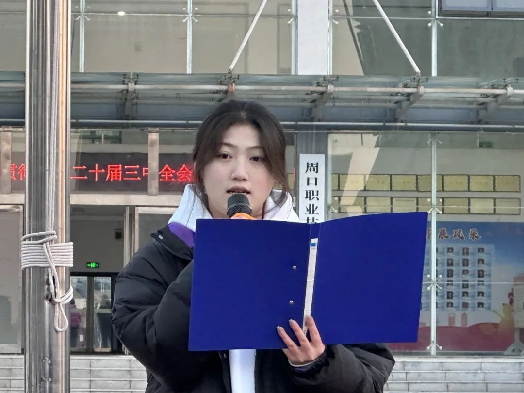 诚信考试,是道德底线与人格坚守。考场之上,面对的不只是试卷,更是自己的良心与操守。分数虽重,却不及诚信珍贵。学生代表赖金薇以《认真复习,诚信考试》为主题号召同学们:“诚信迎考并非一句空口号,是要用实际行动捍卫的准则。让我们怀揣诚信之心,手握知识之笔,在考场上交出满意、真实的答卷,为青春添彩,为未来奠基!愿大家都能考出佳绩,收获知识硕果!”