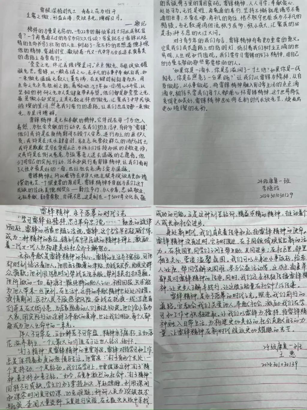 为深入学习贯彻习近平总书记关于弘扬雷锋精神的重要论述,引领学生深刻把握雷锋精神的时代内涵和实践要求, 弘扬“奉献、友爱、互助、进步”的志愿精神,营造积极向上的校园氛围。3月11日至3月14日,周口职业技术学院医学院组织开展“学雷锋、做志愿、服务改革建新功”主题征文活动。
