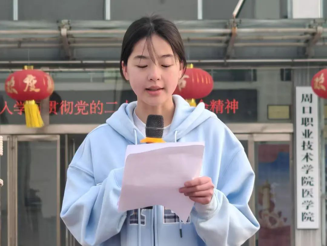 3月24日,周口职业技术学院文昌校区举行第六周升旗仪式。医学院全体副科级以上干部、辅导员、全体在校学生参加本次升旗仪式。