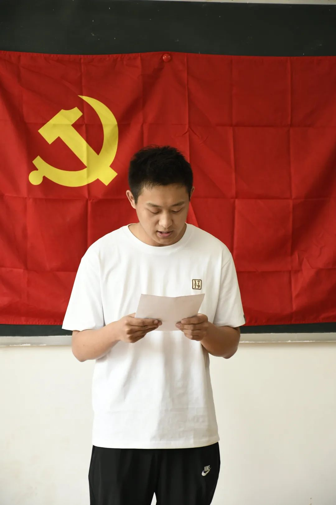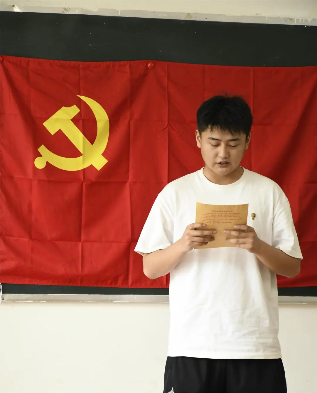 陈俊帅等10位预备党员宣读转正申请,汇报自己在预备党员以来的思想认识、学习情况、日常生活和工作情况等方面的表现、不足与进步,表达了成为正式党员的愿望和对党的坚定信念。