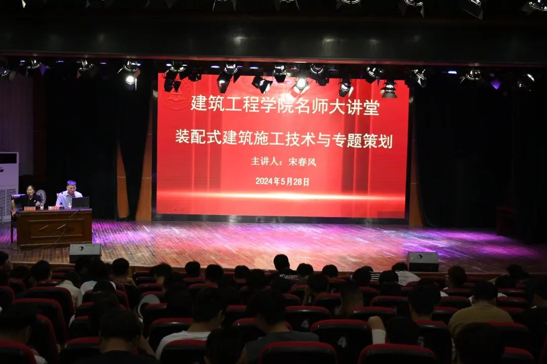 2024年5月28日下午4点建筑工程学院在励德厅举办第五期名师大讲堂讲座,讲座的主题是:装配式建筑施工技术与专题策划。建筑工程学院班子成员和全体在校学生参加了此次讲座。此次讲座的受邀嘉宾是周口筑友智造科技有限公司总经理宋春风先生,本次讲座由建筑工程学院院长刘胜杰主持。
