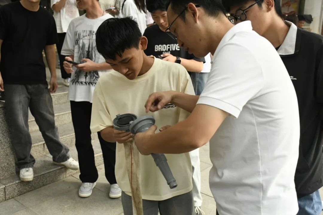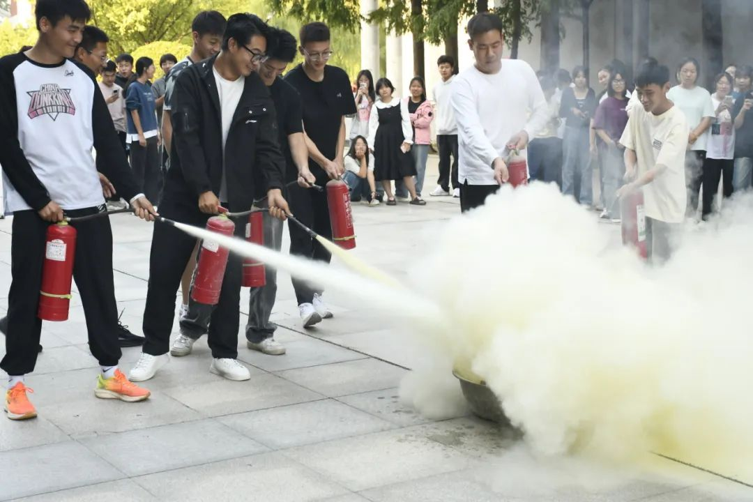随后,老师对消防栓的使用进行了详细的教学。“手把手”地进行指导,从开箱门、拉管道、连接水管等步骤进行详细指导,并邀请在场同学亲自操作灭火器和消防栓进行灭火。